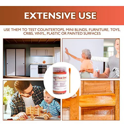 • Ampliamente utilizado: Estos hisopos para pruebas de plomo no dañan la superficie analizada. Son ideales para analizar todo tipo de superficies pintadas, desde encimeras hasta muebles, vinilo, plásticos, metales, madera, etc.