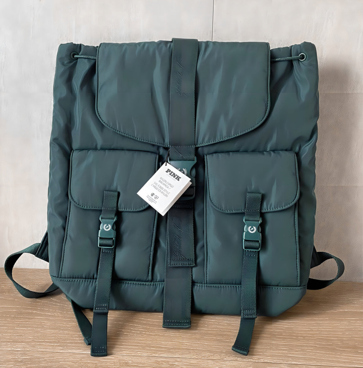 Mochila Cargo Escolar Pink Victoria's Secret Color Verde Oscuro Diseño De La Tela Liso
